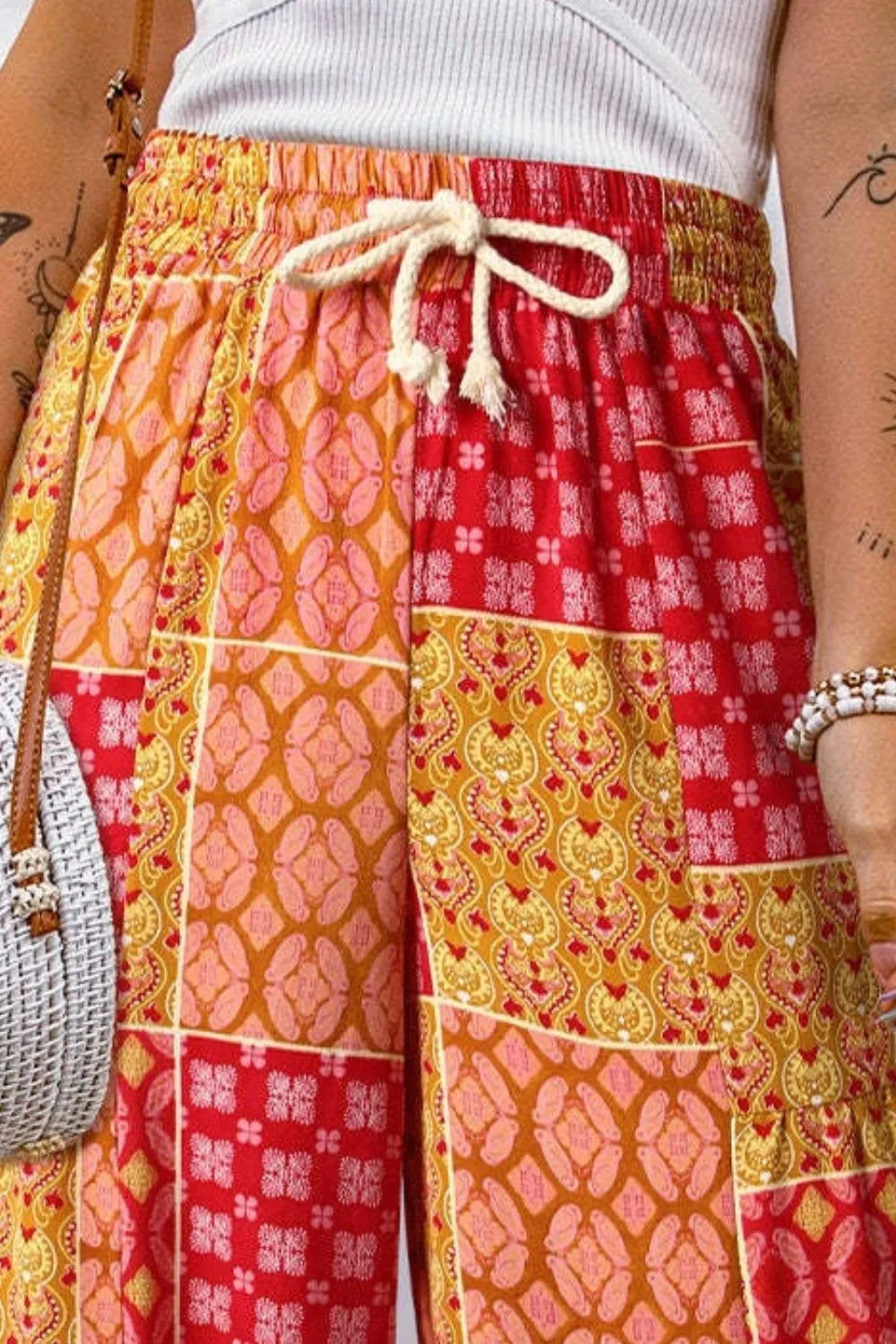 Floral casual pants loose floral color blocked casual pants