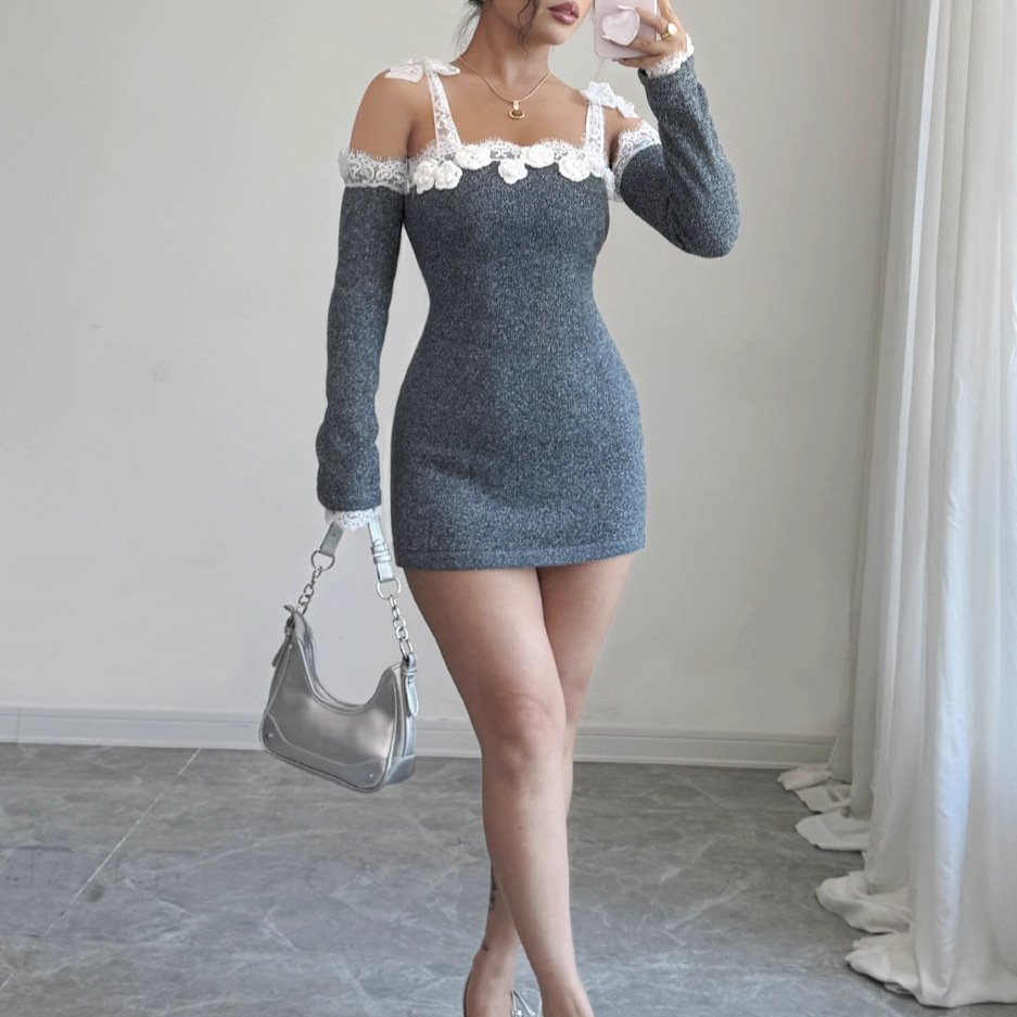 Hollow Out Long Sleeve Knitted Mini Dress