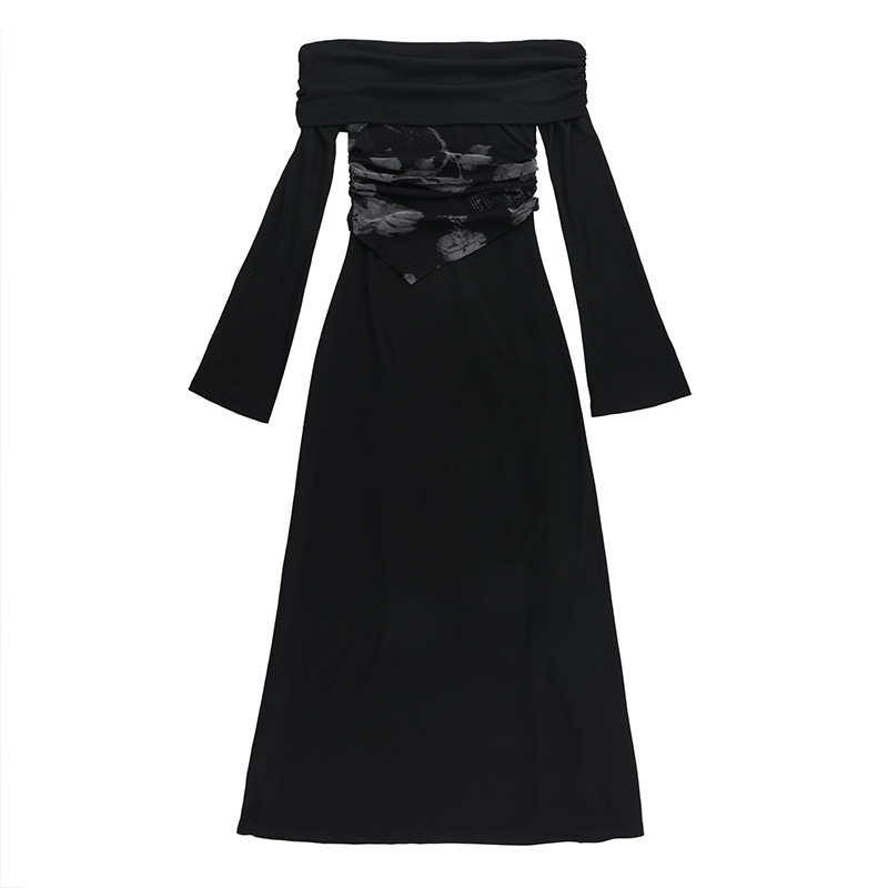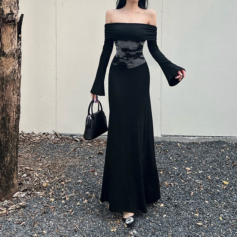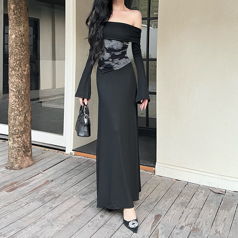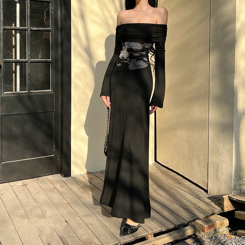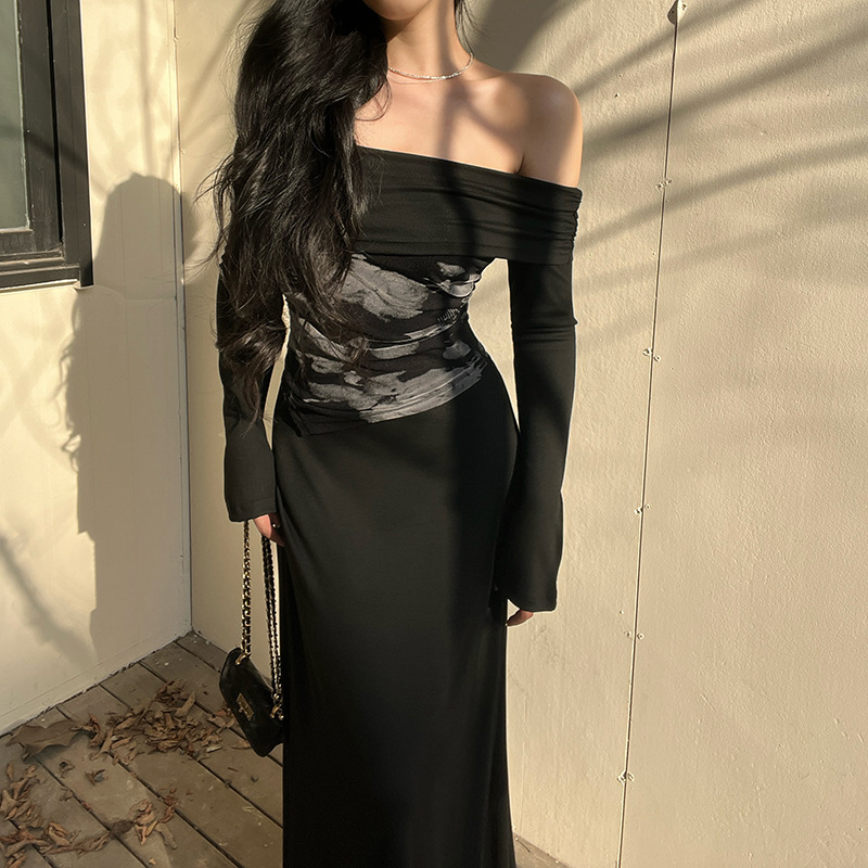 Wear long sleeved dresses with one shoulder and slanted shoulders