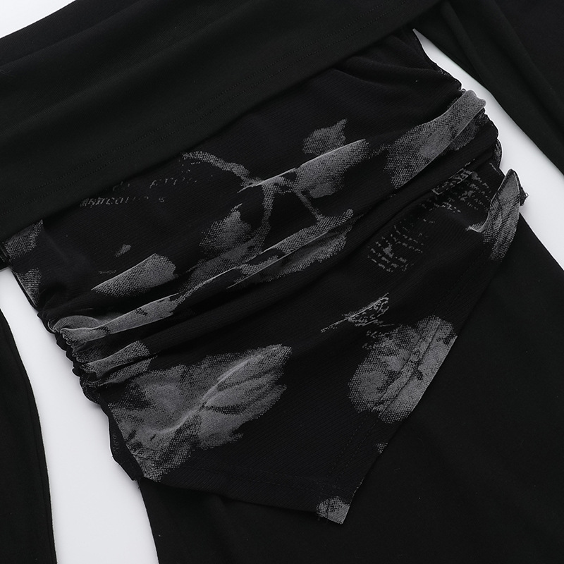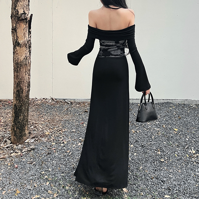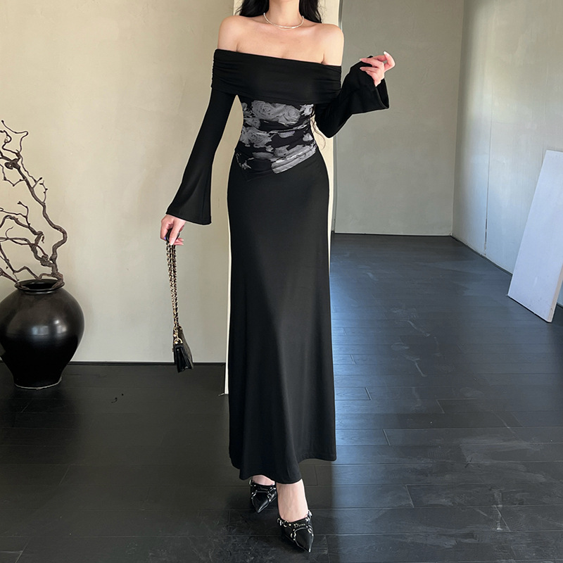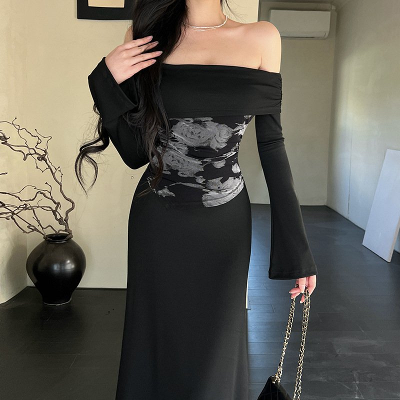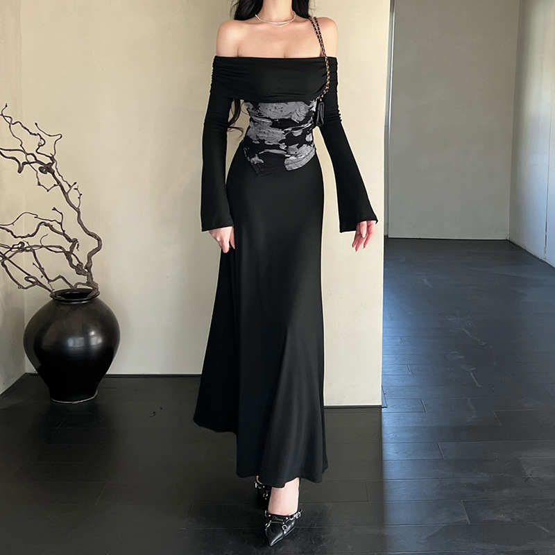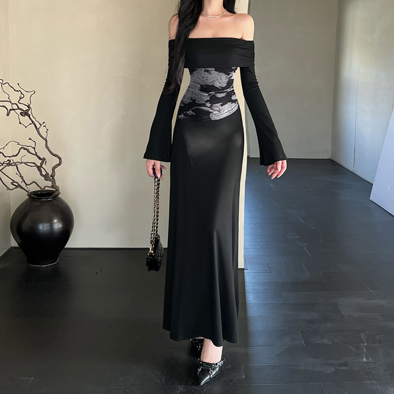 Wear long sleeved dresses with one shoulder and slanted shoulders