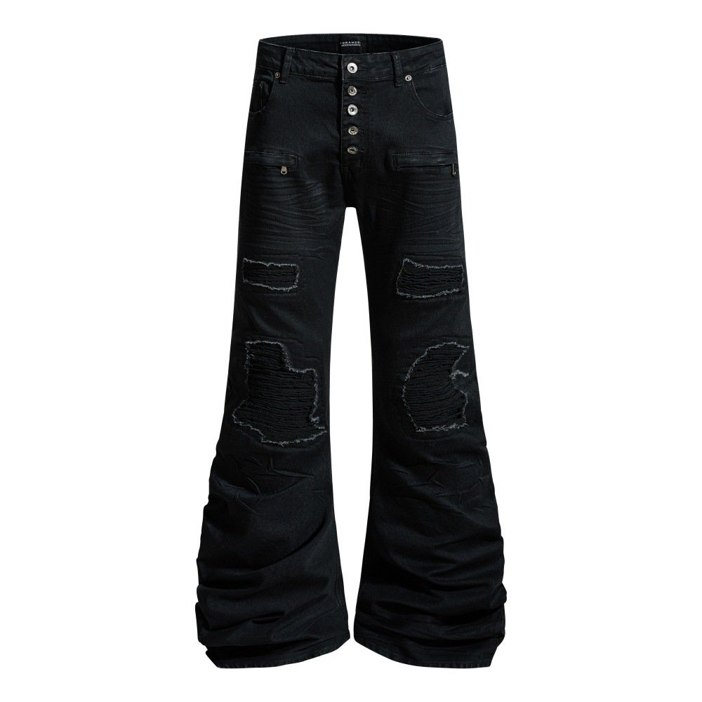 Punk ripped patch denim bell bottoms