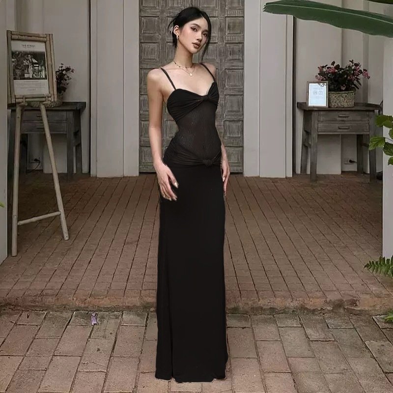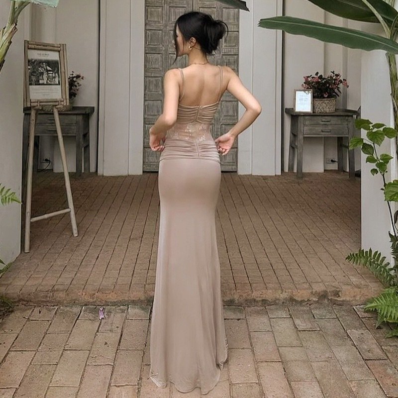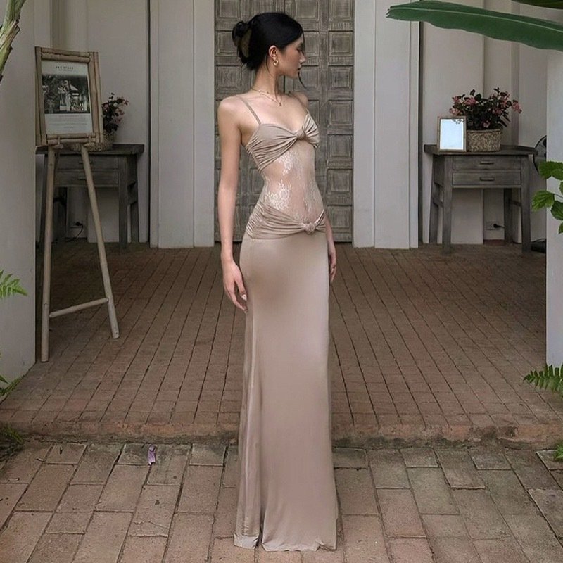 Solveraia Lace Transparent Slimming Strap Long Dress