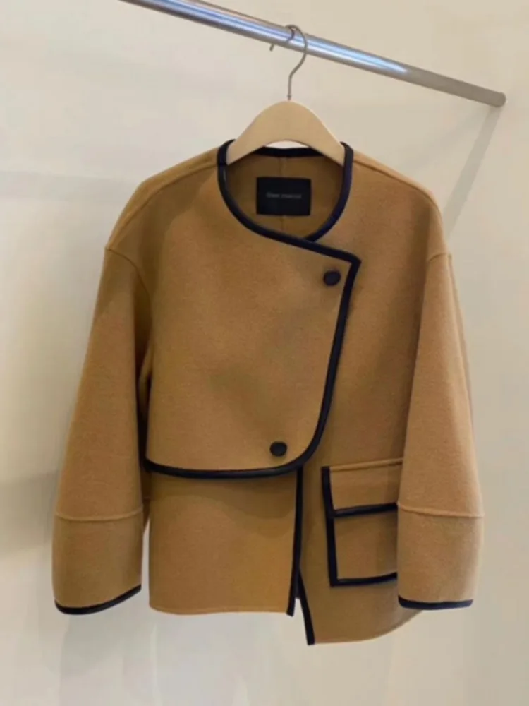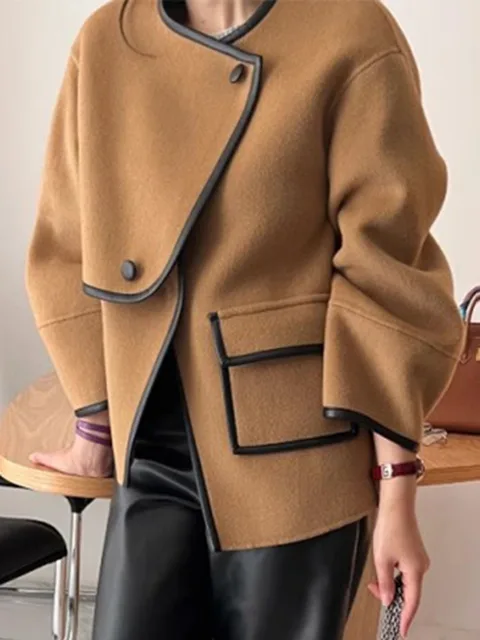 The Solveraia Patchwork Contrast Camel Coat for Women is a relaxed woolen-feel outerwear piece created for autumn and winter styling. With its soft texture, contrast patchwork design, and loose silhouette, it is a practical choice for women who want a warm, easy-to-style coat for commuting, travel, shopping, and polished everyday wear.