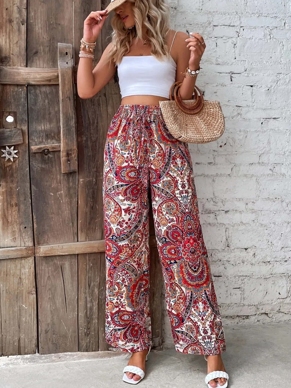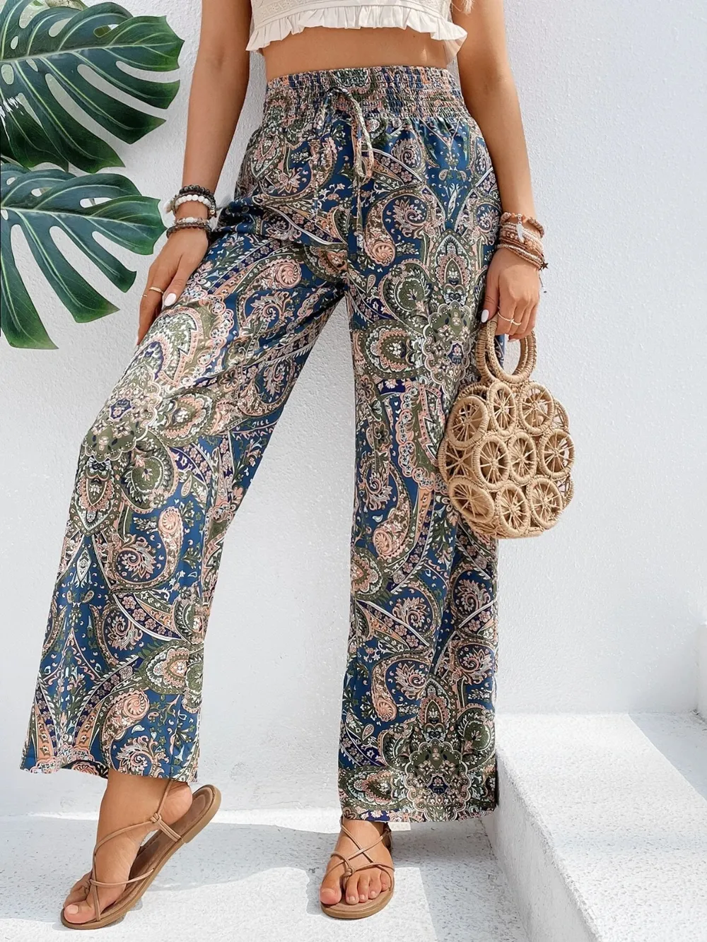 Solveraia Printed Wide‑Leg Pants