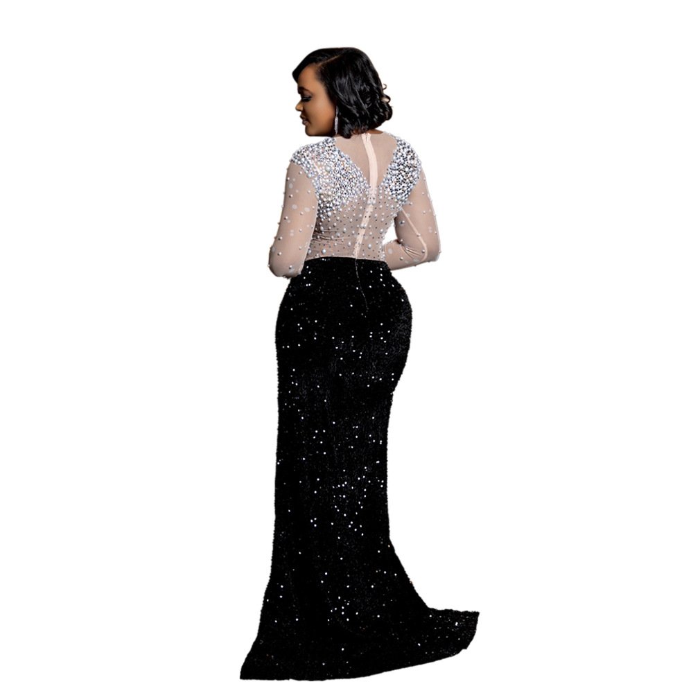 Crafted from a soft and smooth stretch-blend fabric, this dress is designed to feel comfortable against the skin while creating a sleek and elegant drape. The round neckline gives the look a clean and timeless finish, while the high slit adds movement and a more elongated silhouette. It is especially suitable for dinners, parties, formal gatherings, celebrations, evening events, travel, and refined day-to-night styling.