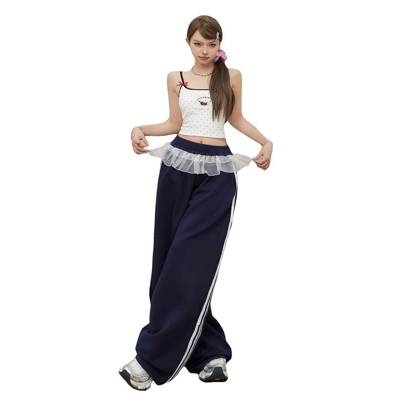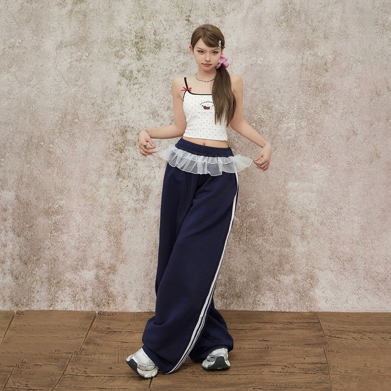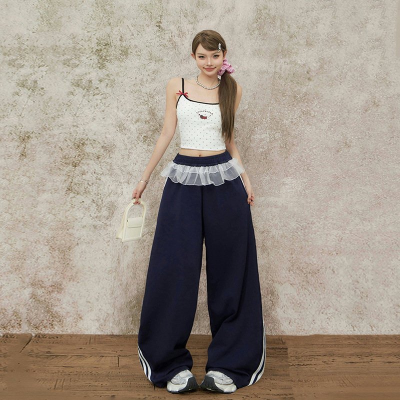 Featuring a loose wide‑leg silhouette with cargo pocket details and a decorative lace hem, these pants offer a relaxed drape that flatters without clinging. The fit runs true to size — for the most flattering and comfortable fit, select your size based on your waist and hip measurements, as body proportions such as height and weight help determine the best choice.