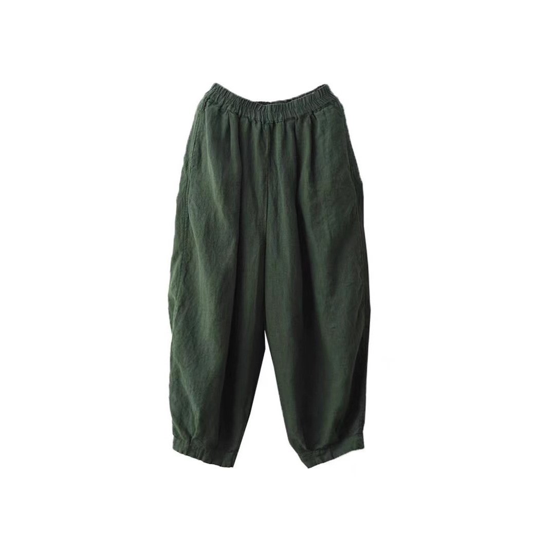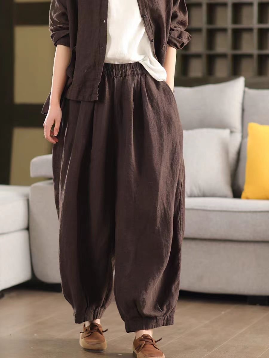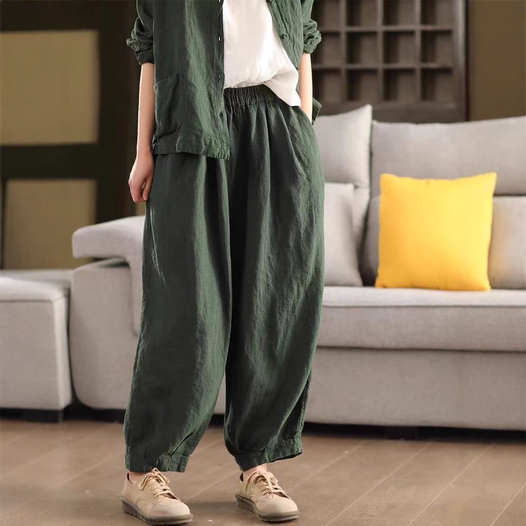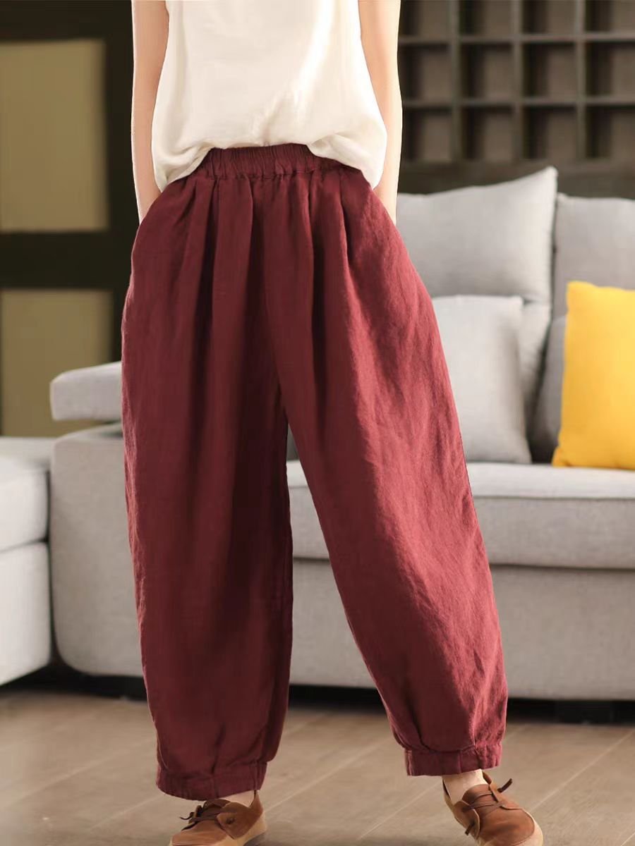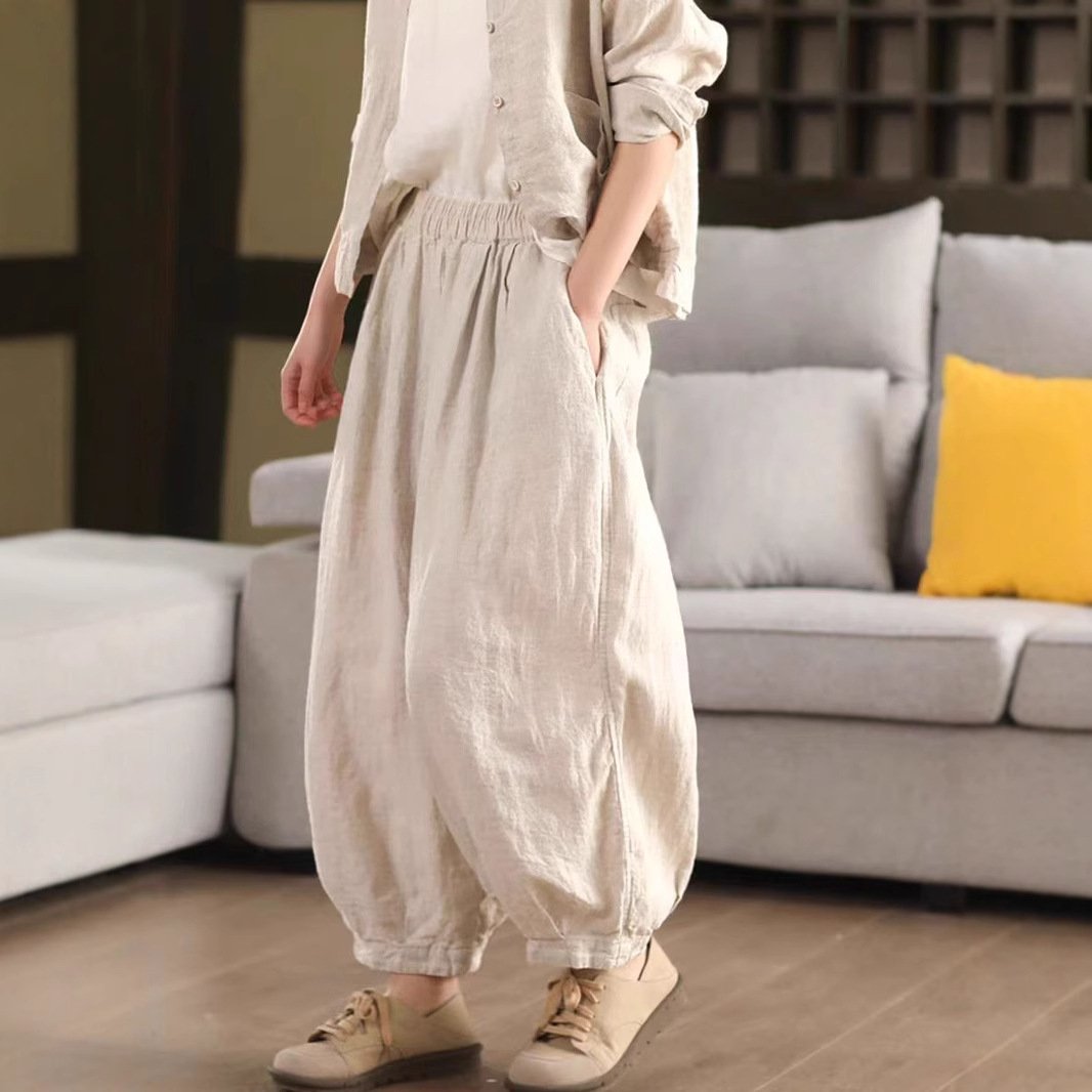 Spring New Linen Loose Harem Pants for Women with Inner Lining, Slimming Casual Long Trousers Bottoms