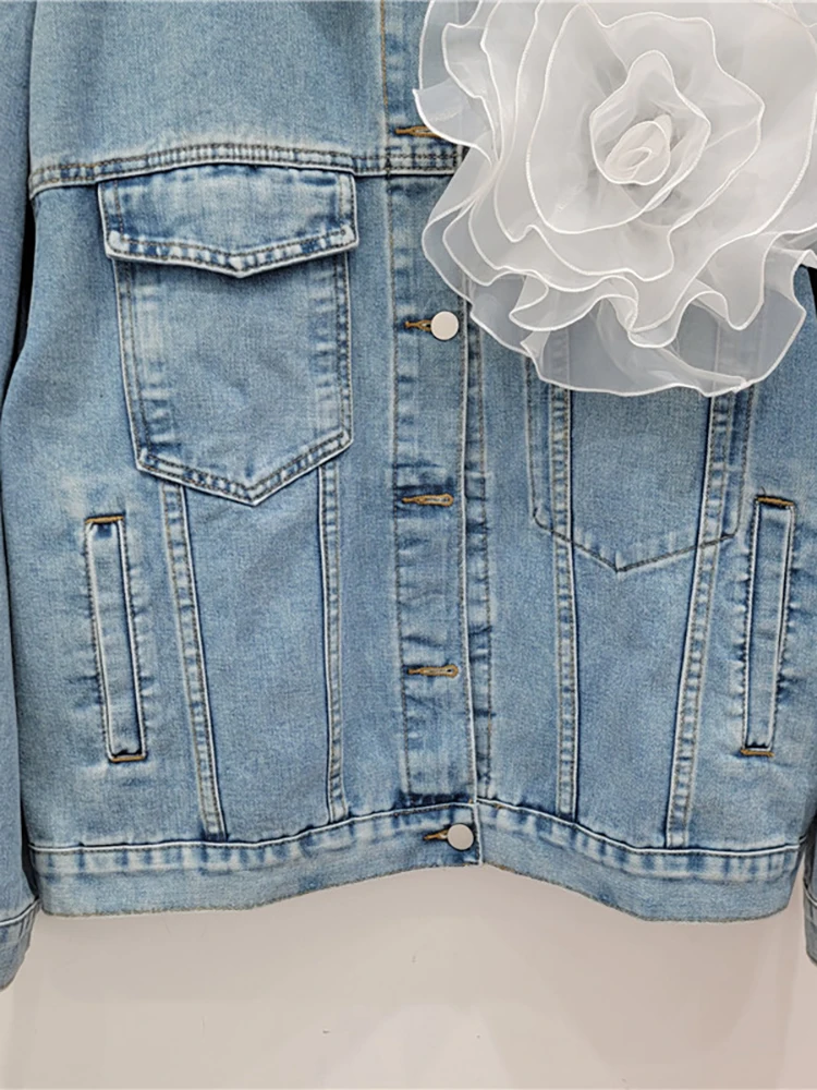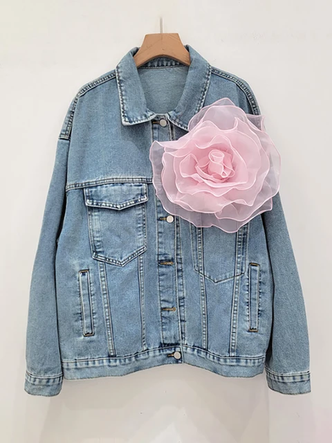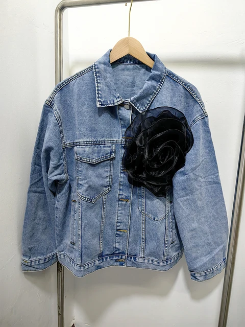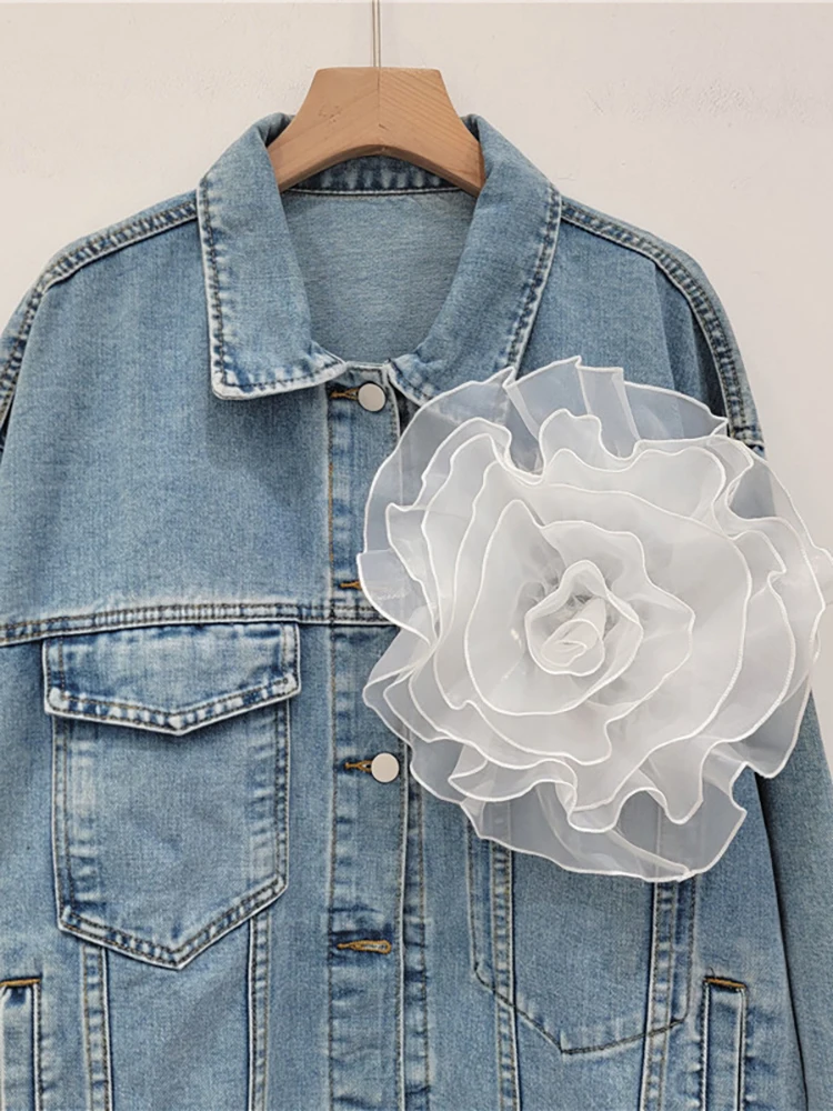 Solid Patchwork Appliques Loose Denim Jackets