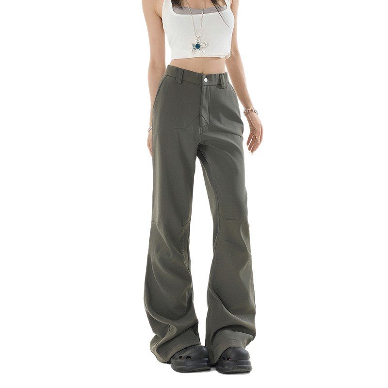 Women’s Pants Flared Casual Trousers Pure Color Slim Retro Elastic Low Waist Bell-bottoms