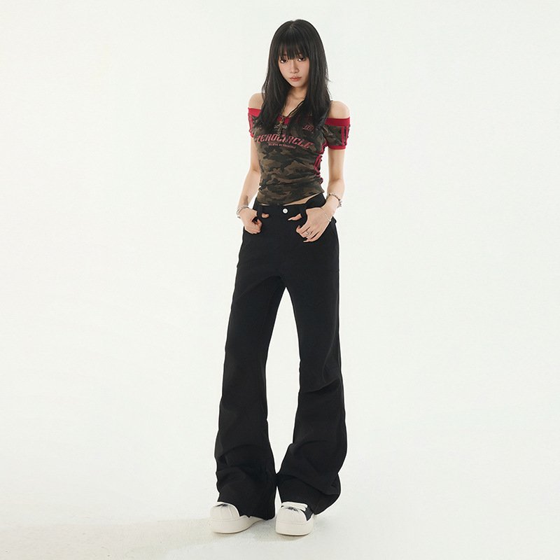 Versatile straight leg casual slightly flared denim pants long pants
